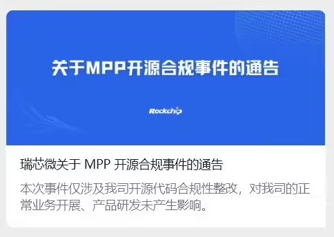 ·瑞芯微就MPP开源合规事件致歉