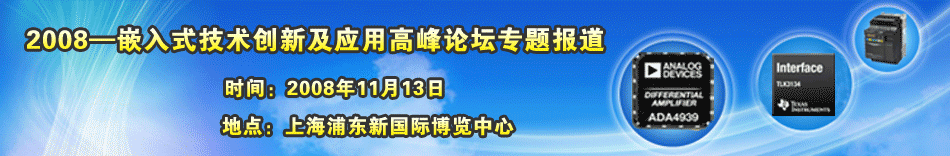 2008年11月13日,初冬的上海暖日融融,第72届中国电子展(CEF)在浦东新国际博览中心进入第二天的同时,也迎来了特殊的一天。上午九点,展览会通道还开通不久,W3号馆M10会议室里已然人头攒动、座无虚席。由《电子技术应用》期刊、电子技术应用网(www.chinaaet.com)举办的、为期一天的“2008-嵌入式技术创新与应用高峰论坛”即将在这里召开。国内外20多家IC设计公司和嵌入式系统领域的领先公司及高校、研究所的专家们齐聚一堂,使此次高峰论坛熠熠生辉。 [全文]