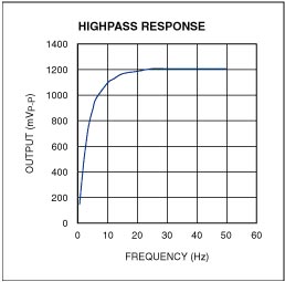 对于交流耦合,应关注的问题之一是电容通常比较大—220μF或者更大。这是因为电容和150Ω负载(反向端接电阻和输入端接电阻之和)形成的极点频率应远远低于帧频(25Hz或30Hz)。一只220μF的电容器形成5Hz的极点频率,这很难满足性能要求。广播设备通常都使用2200μF的电容。图4给出了采用220μF电容时交流耦合输出的高通响应特性。