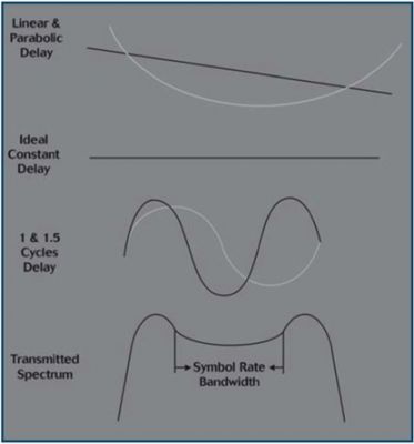 图1:为了获得最佳的卫星链路性能,有必要测量和精确补偿在频段边缘由群时延引起的失真。