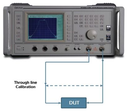 校准MSA内的固有时延可以用简单的直通连接非常快速的完成,如图2所示。这对频率转换设备的测试精度可能有些影响,但在大多数情况下这种精度的少许下降不是问题。使用“黄金标准”技术可以达到更高的精度,这种方法先要测量一个完美表征过的元件,然后再与DUT进行比较,这将在下一部分进行详细介绍。