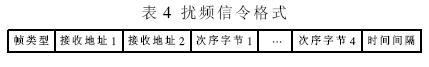 每次通话之前,即按下PTT之后,首先延时一段时间,这个时间由中继台的最大延时决定;再发送扰频信令,确定此次通话是否扰频以及扰频的次序和时间间隔,为了与未加扰频模块的手持台通信,需要保留不扰频的功能,即CMX264在Clear模式下工作;同时增加地址选项,通过地址进行分组,可以实现组呼和单呼;通话完毕时发送结束帧,使手持台恢复到Clear模式。根据上述要求,设计扰频信令格式如表4所示。