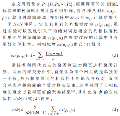在聚类实验中网页的数目为500~1000,在这个复杂度上,可以采用类CURE算法。在本文的网页聚类实验中,距离定义为两个网页的树编辑距离。