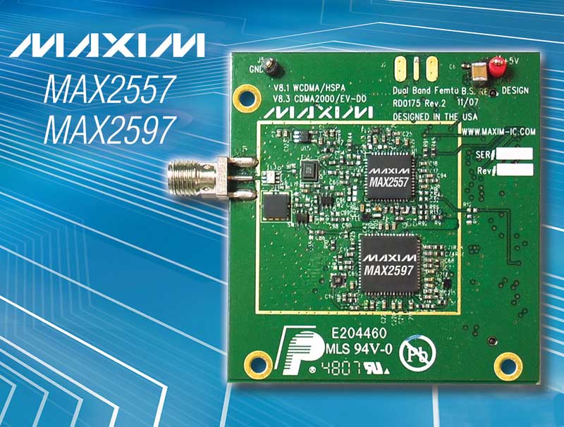 Maxim推出针对北美UMTS市场的具有独特数字接口的WCDMA波段II和波段V femto基站收发器芯片组MAX2557/MAX2597。接收器(MAX2557)和发送器(MAX2597)采用Maxim专有的高动态范围MAX-PHY接口,无需混合信号模拟前端。MAX2557具有4路低噪声放大器(LNA)输入,能够监测WCDMA和GSM宏观网络信号。MAX2597集成了功率放大器(PA),进一步降低了BOM成本。该款业内领先的芯片组是针对新兴femto基站市场的集成度最高、性能最好的方案。