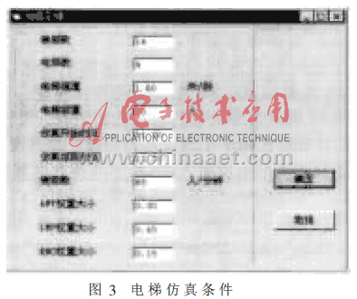 根据以上的交通模式判别策略和调度算法,我们用VB编制了电梯仿真软件系统[4][5][6],该系统具有电梯参数设置、仿真、性能统计、交通模式判别、系统帮助等功能。考虑到系统的开放性、可扩充性、柔性等特点,采用了面向对象的分析和设计方法。在群控系统中每个电梯均可看成一个对象,对象之间通过消息进行通讯。采用本文所介绍的调度策略进行了仿真实验,仿真条件如图3,仿真比较结果如图4。结果表明AWT、LWP性能均提高,而RNC性能则降低。这是因为在此仿真时段对能源消耗的重要性要求降低所致,反映在仿真条件上是RNC对应的权重相比其它两项较小。