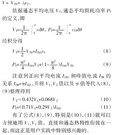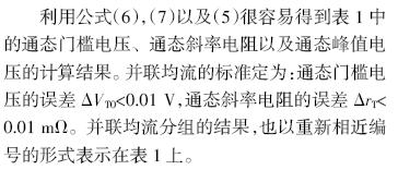 很显然,运用公式(3)或(4)可以得到通态参数的精确数据和实测结果,但还不方便用于并联均流匹配工作。