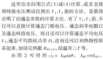 图2 中,V1 是0.5ITM 下的峰值电压,V2 是1.5ITM 下的峰值电压,VTM 是ITM 下的峰值电压,ITM为通态峰值电流,ITM=3(或仔)IT AV,IT AV是正半波平均电流。