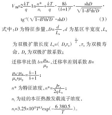 公式(3)是一个复杂的函数形式,通态电流对通态电压的重大影响是隐含在其各个参量上的。