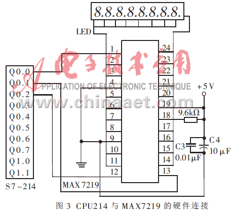 MAX7219只需一组+5V电源和PLC的三个输出口,且无附加电路,可驱动1~8个LED显示器,显示亮度可调,工作可靠。