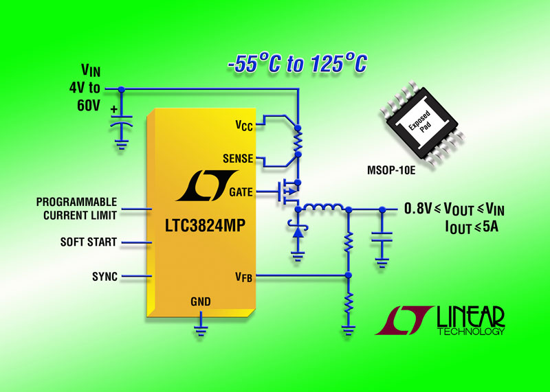LTC3824MP 在 -55oC 至 125oC 的工作结温范围内运作,且 100% 经过生产测试。以 1,000 片为单位批量购买,每片价格为 3.47 美元。如需更多信息,请登录 www.linear.com.cn。
