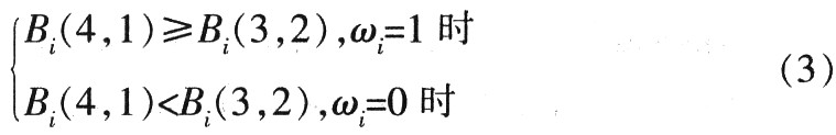 当ωi=1,系数(4,1)大于系数(3,2),且两者差值小于α时,按式(4)调整: