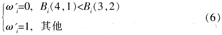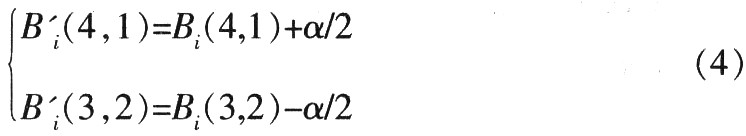 当ωi=0,系数(3,2)大于系数(4,1)且两者差值小于α时,按照式(5)调整: