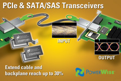 二零零九年六月三十日 -- 中国讯 -- 美国国家半导体公司 (National Semiconductor Corporation)(美国纽约证券交易所上市代码:NSM)宣布推出两款能源效率极高的全新四路收发器,其优点在于可延长背板及电缆的信号传送距离,比同类产品的传送距离超出达30%。这两款PowerWise? 信号调节芯片可以驱动数据储存中心服务器及存储局域网(SAN)内的高速信号。型号为DS50PCI401的信号调节芯片已取得PCI-SIG 技术认证,可支持 PCI Express (PCIe) 第一代 (2.5Gbps) 及第二代 (5Gbps) 的技术标准;型号为DS64BR401 的信号调节芯片除了可支持速度达 3Gbps 和 6Gbps 的 SATA/SAS技术外,还可支持XAUI、串行快速输入/输出(sRIO)以及光纤通道等高速信号的传输标准。