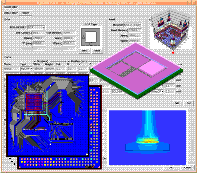 新的设计环境采用一个集成的设计数据库,可提供对于设计数据和简易连接的统一管理,以进行电子和散热特性的分析。因此,芯片上的数据形成并定位,同时,芯片-芯片连接数据可以从数据库中提取,并连接到基底布局工具。而且,丝焊与基底布局工具得出的基底模式数据可以与其它分析工具互联。为了实现更强的简单易用性,设备提供了一个通用接口,用于启动工具并进行设置。