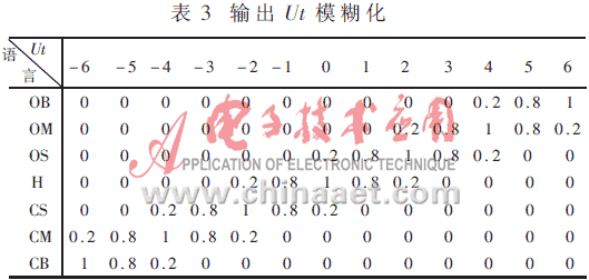 (3)输出语言变量,记为Ut,是电子膨胀阀在6秒周期内连续开启的时间,单位为秒,它对应电子膨胀阀开度大小。