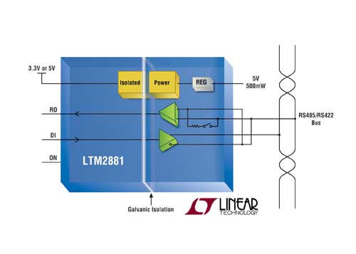 · 3.3V (LTM2881-3) 或 5.0V (LTM2881-5) 标称电源电压选项