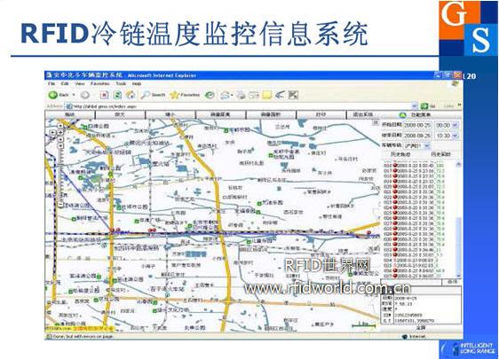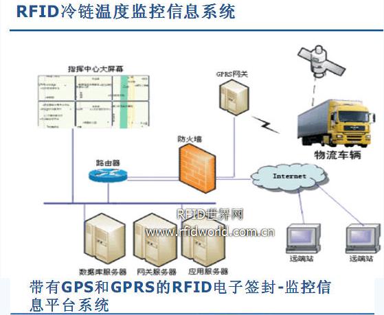 用温度标签对冷藏车辆安装温度+GPRS车载终端和i-B2标签:冷库安装i-Q32T温度标签和读写天线,备货区安装i-PORT MQ读写器并联网,系统能够随时查询全国冷库、冷藏车的实时温度情况,并可实现温度曲线、历史记录、超标自动报警、周报、月报、看报等功能。