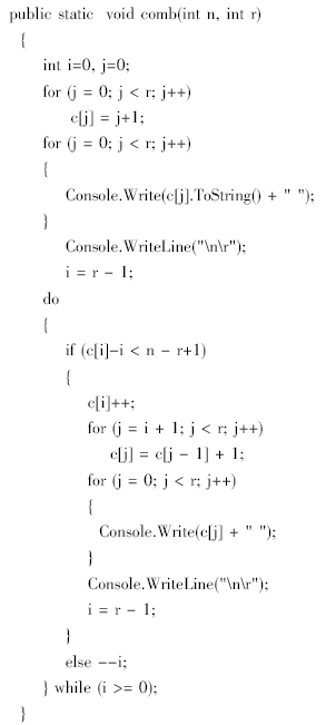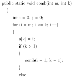 设函数为void comb(int m,int k)为找出从自然数1,2,…,m中任取k个数的所有组合。当组合的第1个数字选定时,其后的数字是从余下的m-1个数中取k-1个数的组合。这就将求m个数中取k个数的组合问题转化成求m-1个数中取k-1个数的组合问题。设函数引入工作数组a[]存放求出的组合的数字,约定函数将确定的k个数字组合的第1个数字放在a[k]中,当一个组合求出后,才将a[]中的一个组合输出。第1个数可以是m,m-1,…,k,函数将确定组合的第1个数字放入数组后,有两种可能的选择,因还未去掉组合的其余元素,继续递归去确定;或因已确定了组合的全部元素,输出这个组合。细节见以下程序中的comb函数。
