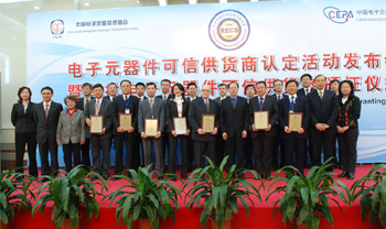 中国电子" title="中国电子">中国电子质量管理" title="质量管理">质量管理协会和中国电子企业" title="电子企业">电子企业协会采购分会今天在北京人民大会堂共同召开“电子元器件可信供货商" title="供货商">供货商”认定活动新闻发布会,并为首批获得电子元器件可信供货商认证的企业进行颁证仪式。
