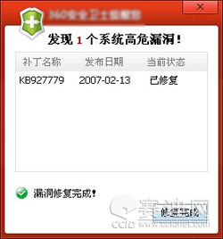 下午系统突然提示“发现1个系统高危漏洞!”,仔细一看补丁名称为“KB927779”,发布日期竟然是“2007-02-13”。几年前的补丁,怎么现在提示安装?上网搜索发现许多网友都提到这个KB927779补丁会出现重复更新现象。