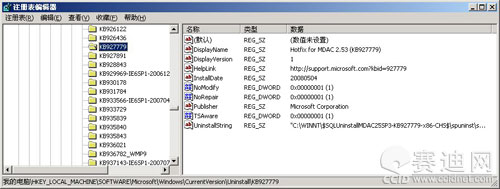 这是一种通用解决方案,在HKEY_LOCAL_MACHINE\SOFTWARE\Microsoft\Windows\CurrentVersion/Uninstall分支下,新建一个分支,名称就是这个补丁的编号。然后进入该分支,双击右侧“默认”字符串,赋值为“ThisKeyisrequiredtoSTOPWindowsUpdatefrompromptingforaninstall”,然后关闭注册表编辑器并重新启动Windows。重新启动Windows后,再次打开注册表编辑器,定位到:HKEY_LOCAL_MACHINE\SOFTWARE\Microsoft\Updates\WindowsXP\SPX(其中SPX的X是数字,如果你的系统是WindowsXPSP2,则X是3;如果是WindowsXPSP1,则X是2),把这个注册表项中的KB927779子键删除。然后关闭注册表编辑器并重新启动Windows。