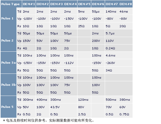双电池突发启动,这是另外一种稳态过压条件,一般发生在拖车或维修人员使用24V电原发动不工作的汽车,或对完全放电的电池进行充电的情况下,对于这种情况,典型的 OEM测试要求是在24V下持续2分钟。有些与安全、引擎管理相关的系统需要保证在这种条件下能够工作。