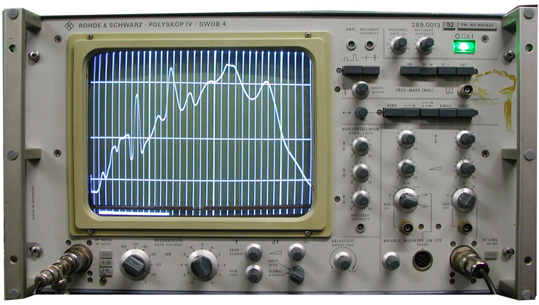 The Rohde & Schwarz Polyskop 4, also called SWOB IV, is a complete sweeper system for the frequency range of 100 kHz to 1000 MHz.With maximum sweep width, the complete range can be swept at one time. Has a narrow sweep mode as well: in this mode maximum sweep width is 30 MHz, min. 150 kHz.Horizontal display (sweep time) adjustable between 20 ms and 2 seconds.Dynamic range 60 db.Built-in display with large CRT, built-in demodulator, no external accessories needed.Offered here is the 75 Ohm version, which is equipped with N-connectors.