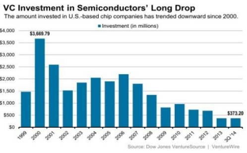 风投在半导体业的投入逐年减少,半导体初创企业已经不复本世纪初的风光