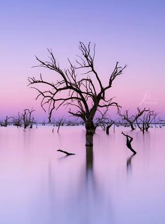 日出前和日落后,太阳反方向的地平线会出现一条粉紫色的色带,这条色带的术语叫做维纳斯带。通常在这个时段拍摄的照片由于光线柔和色彩柔美,画面会呈现出一种很唯美的色调。