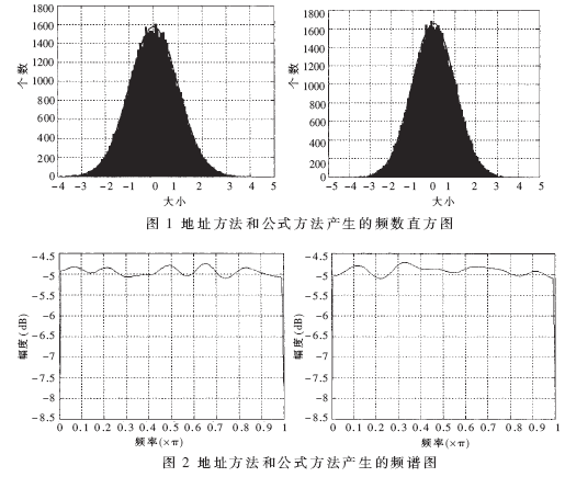通过Matlab仿真,可以获得两种方法产生高斯白噪声的性能,如图1和图2所示。