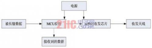 本系统中的无线数据传输主要由无线数据收发器nRF905、C8051F单片机和显示部分组成。nRF905收发器与单片机之间通过SPI口进行通信。因此,软件设计过程中的重点是nRF905数据的发送和接收过程。
