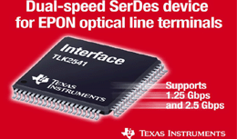 德州仪器针对 EPON 光纤线路终端推出高度灵活的双速 SerDes 器件