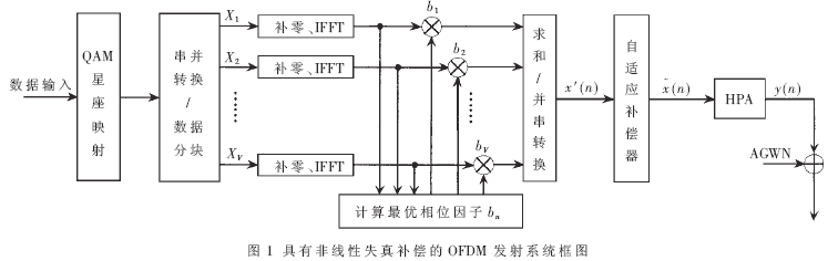 众所周知,OFDM信号具有很高的峰均功率比,对高功率放大器HPA(High Power Amplifier)的线性度要求很高,否则就会产生非线性失真,造成频谱扩展以及带内信号畸变,使系统的性能恶化,因此必须对系统的非线性失真进行抑制。