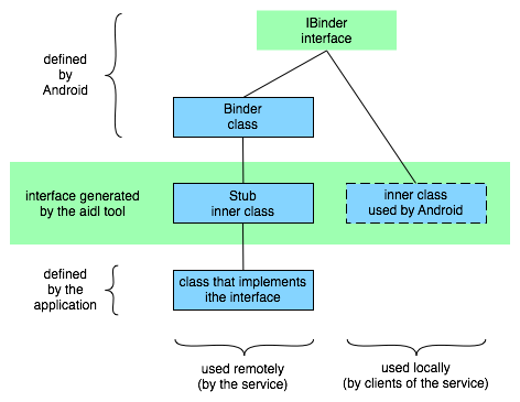 还有就是AIDL (Android Interface Definition Language) ,一种接口定义的语言,服务的RPC接口,可以用AIDL来描述,这样,ADT就可以帮助你自动生成一整套的代理模式需要用到的类,都是想起来很乏力写起来很苦力的那种。更多内容,可以再看看:guide/developing/tools/aidl.html,如果有兴致,可以找些其他PRC实现的资料lou几眼。