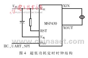 通过MSP430外接32768Hz晶体构建超低功耗实时时钟,结构如图4。