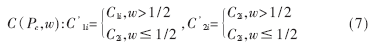 (2)交叉算子:一般取交叉概率为pc在0.6~1.0之间[10]。为了保证所对应基因位置不变,这里采用一致交叉算法,即染色体位串上的每一位按相同概率进行随机交叉,w∈[0,1]为均匀随机分布变量。如新个体X’1=C’11 C’12…C’1n; X’2=C’21 C’22…C’2n, 则操作如下: