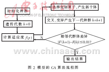 (4)选择策略及终止条件:按适应度大小从杂交、变异后产生新种群和原来种群中选取15个适应度大的个体组成下一代种群。若采用相邻代间适应度差异无显著变化,一般选取小于0.01作为终止条件[11]。程序终止后,将种群中具有较优的个体作为结果输出。