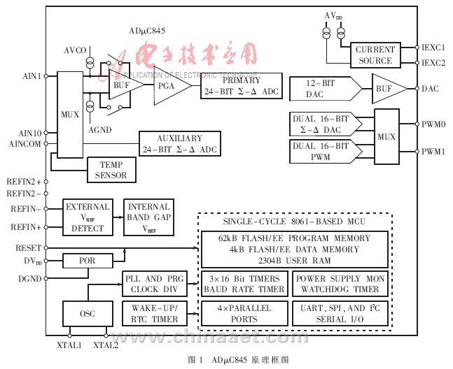 图1所示为ADμC845的原理框图。