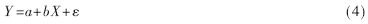 式中X,Y为满足线性数学模型的变量;a,b为待定常数和系数;ε为测量的随机误差。