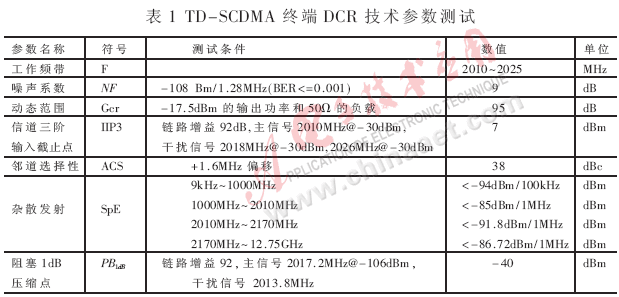 TD-SCDMA终端DCR技术参数测试结果见表1。可见,DCR的技术指标符合TD-SCDMA终端无线规范3GPP TR 25.945的要求[5]。