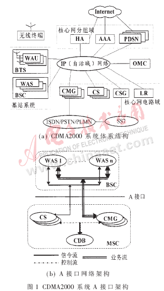 A接口是无线接入网与核心网之间的接口。在CDMA2000系统中A接口包括:A1/A2、A3/A7、A8/A9和A10/A11等接口,它们满足3GPP2 IOS4.1规范。A1/A2接口是CDMA2000系统移动交换中心(MSC)与基站控制器(BSC)之间的接口,该接口秉承CDMAOne系统。A1接口用于传输MSC与BSC之间的信令信息;A2接口用于传输MSC与BSC之间的话音信息。MSC与BSC之间的A1/A2接口,传统上称之为A接口,下文中如不特殊声明A接口即指此接口。