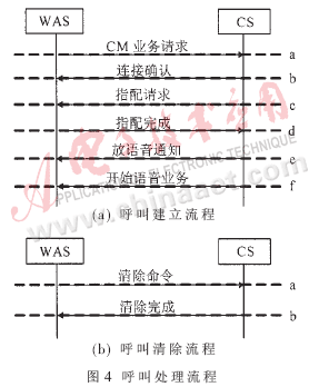 b.CS收到WAS发来的清除命令,释放本次呼叫相关资源后,向WAS发送清除完成消息,同时释放处理ID。WAS收到清除完成后也释放处理ID,完成整个信令连接的释放。