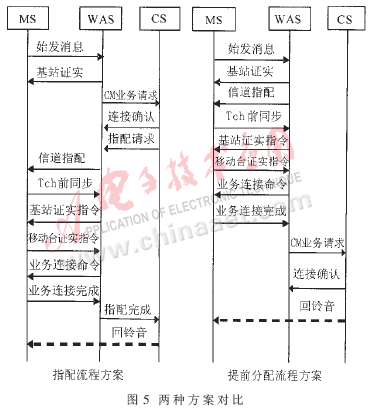 以MS始发语音呼叫建立流程为例,对这两种实现方式做对比,如图5所示。