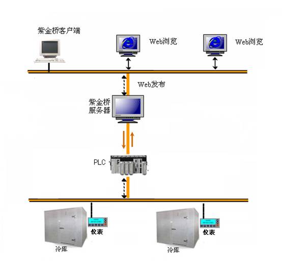 下面将以一个中型冷库为例,介绍紫金" title="紫金">紫金桥软件对冷库温湿度监控系统" title="监控系统">监控系统的解决方案。