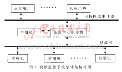整个系统主要由三部分组成:前端机、监控中心和客户端,其具体架构如图1所示。