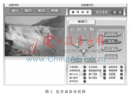 系统采用先进的数字处理技术,使得图像质量更高,更易于保存,通过网络设备可以将图像进行远程传输,实现图像的远程监视、远程控制等功能。图2为监控画面流程图。