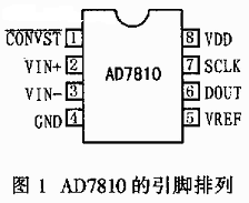 AD7810引脚排列如图1所示,各引脚的功能如下: