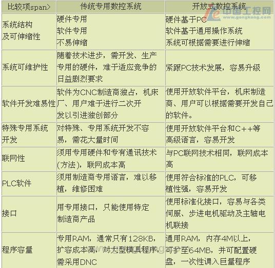 表 传统专用数控系统与开放式数控系统之比较