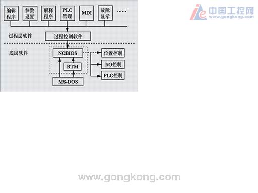 虚线以上的部分称为应用层软件(过程层软件),它包括编辑程序、参数设置、解码程序、PLC管理、MDI、故障显示等与用户操作有关的功能模块。对于不同的数控装置,其功能的区别都在这一层,或者说功能的增减均在这一层进行,各功能模块均可通过NCBIOS与底层进行信息交换,从而使该层的功能模块与系统的硬件无关。