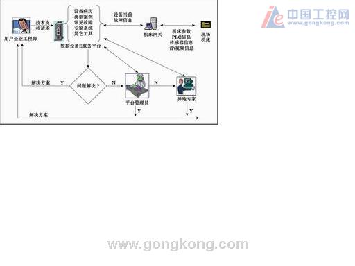 通过Internet将分布在不同地域的数控设备、现场设备维修工程师、设备制造企业维修工程师及领域专家组织和联系起来,在设备与人之间、人与人之间进行快速的信息传递,形成一个网络化的数控设备诊断与维修谘询系统和视频会议系统,借助网络这一快捷的现代通讯手段,对数控设备故障进行快速诊断。